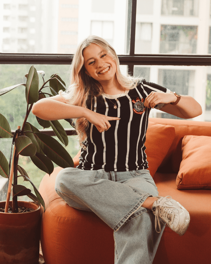 Originária do Paraná, mas isso não a impediu de se apaixonar e virar torcedora fanática pelo Corinthians!